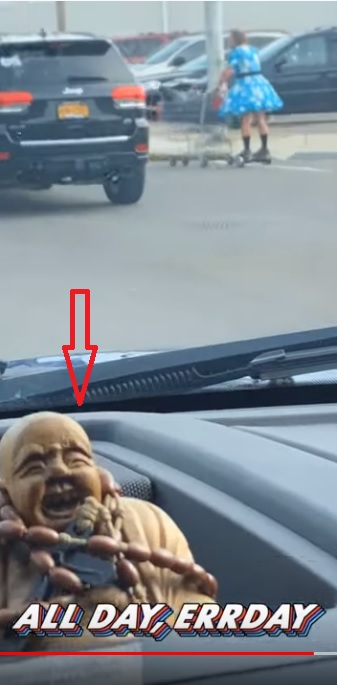 Grown Man In A Dress Pushing A Cart On A Hoverboard In Traffic