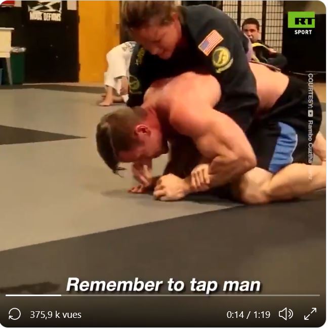 ![]() Non plus sérieusement je pense que c'est exagéré mais je ne doute pas qu'un ou une ceinture noire de jiu jitsu mette un bodybuilder à l'amende même si j'aurais imaginé plus de résistance de sa part.