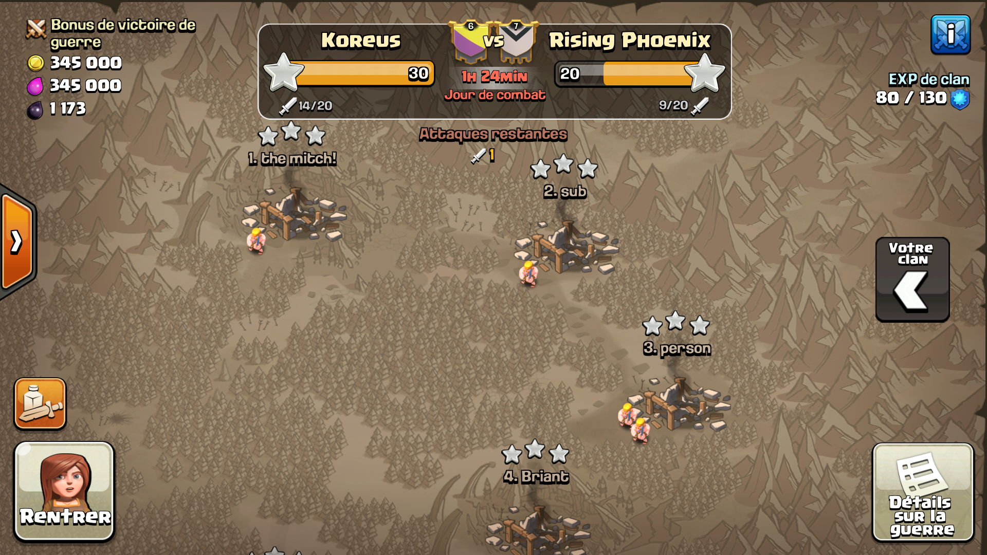 @OzzyO a écrit: Bon du coup je pense que tu ne devrais pas demander au gros du clan depuis combien de temps ils sont sur le jeu. Mais sache que chaque niveau d'Hdv à sa particularité et que du coup c'est presque un GamePlay différents à chaque fois. Tu vas t'amuser ne t'en fais pas, pense à bien ramasser les arbres, ils te rapportent des gemmes quand tu les détruits ![]()