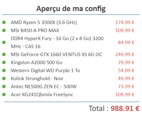J'ai vite bidouillé un ordi pour moins de 1000€ sur LDLC: