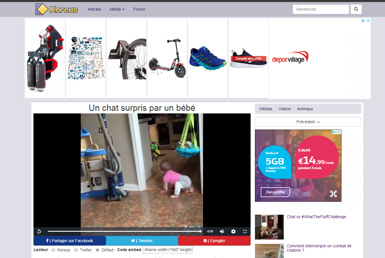 Après avoir cliquer sur le lien, j'ai le temps de lancé la vidéo et bim grosse pub qui s'affiche, impossible à fermer, obliger de faire retour et donc de quitter la page.