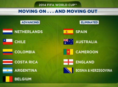 Mise à jour des équipes qualifiées en 8èmes de finale et des équipes éliminées: