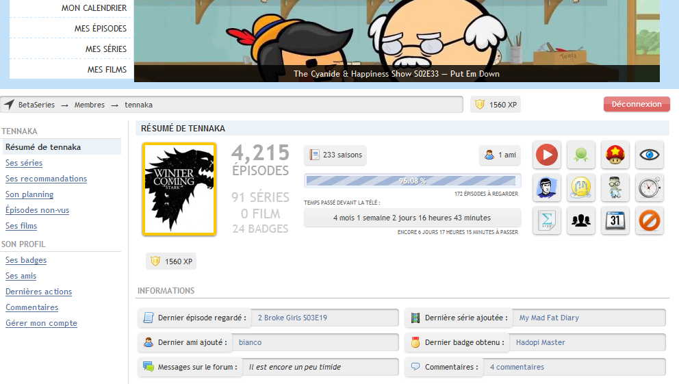 Dans le même genre, j'ai vu récemment le site graphtv.kevinformatics.com qui fait rentrer les notes moyennes de IMDB dans des graphiques. Ça permet d'avoir une idées des séries qui deviennent nul et les éviter. On peut enregistrer le graphique en image.