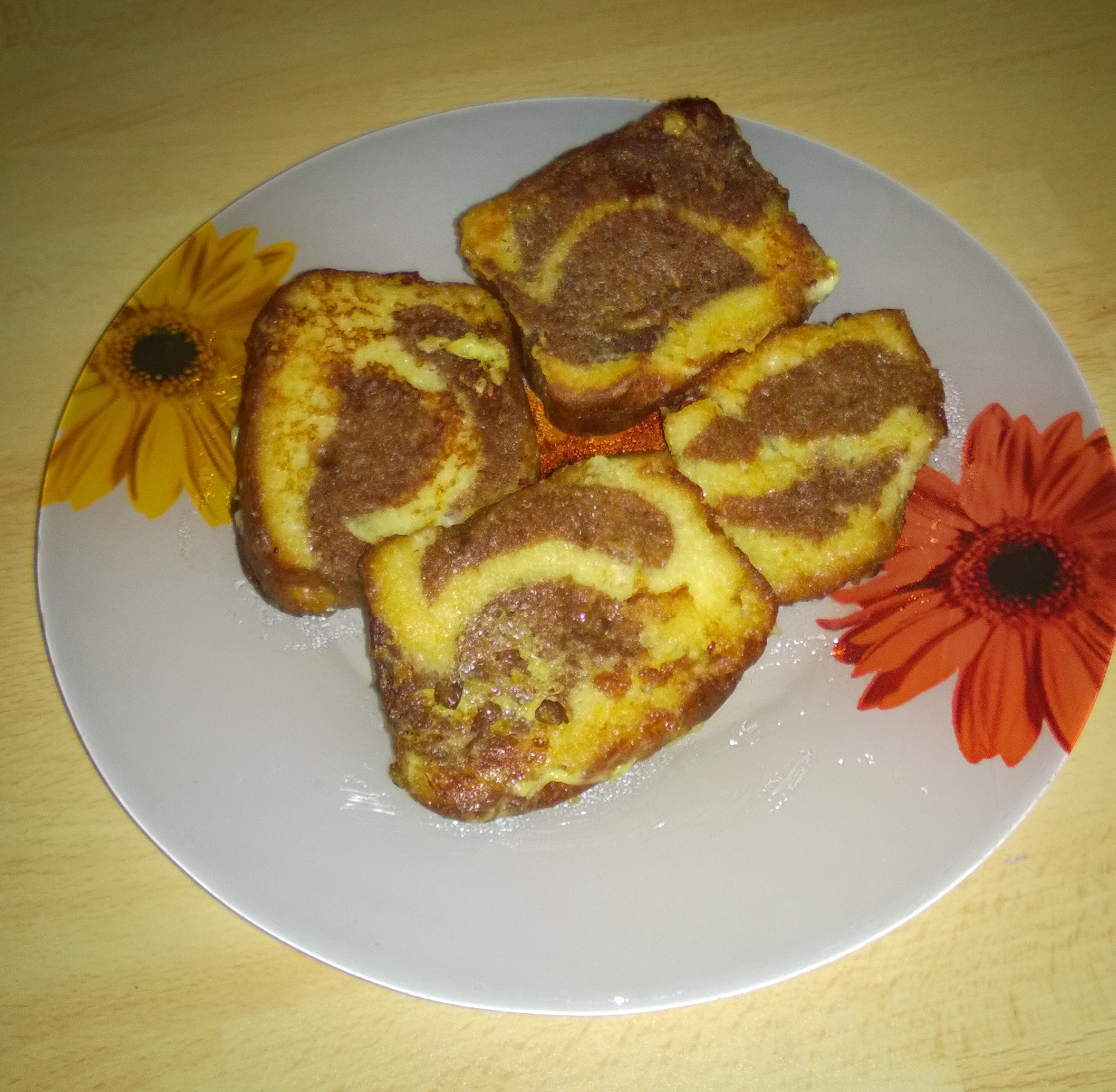 ![]() Je ne voulais pas me résoudre à jeter un bon quart de marbré parce qu'il était devenu sec, du coup je l'ai fait revenir à la poêle version pain perdu ! Et TADAM ! C'était pas mal du tout niveau goût (même meilleur que le marbré de base) ![]()