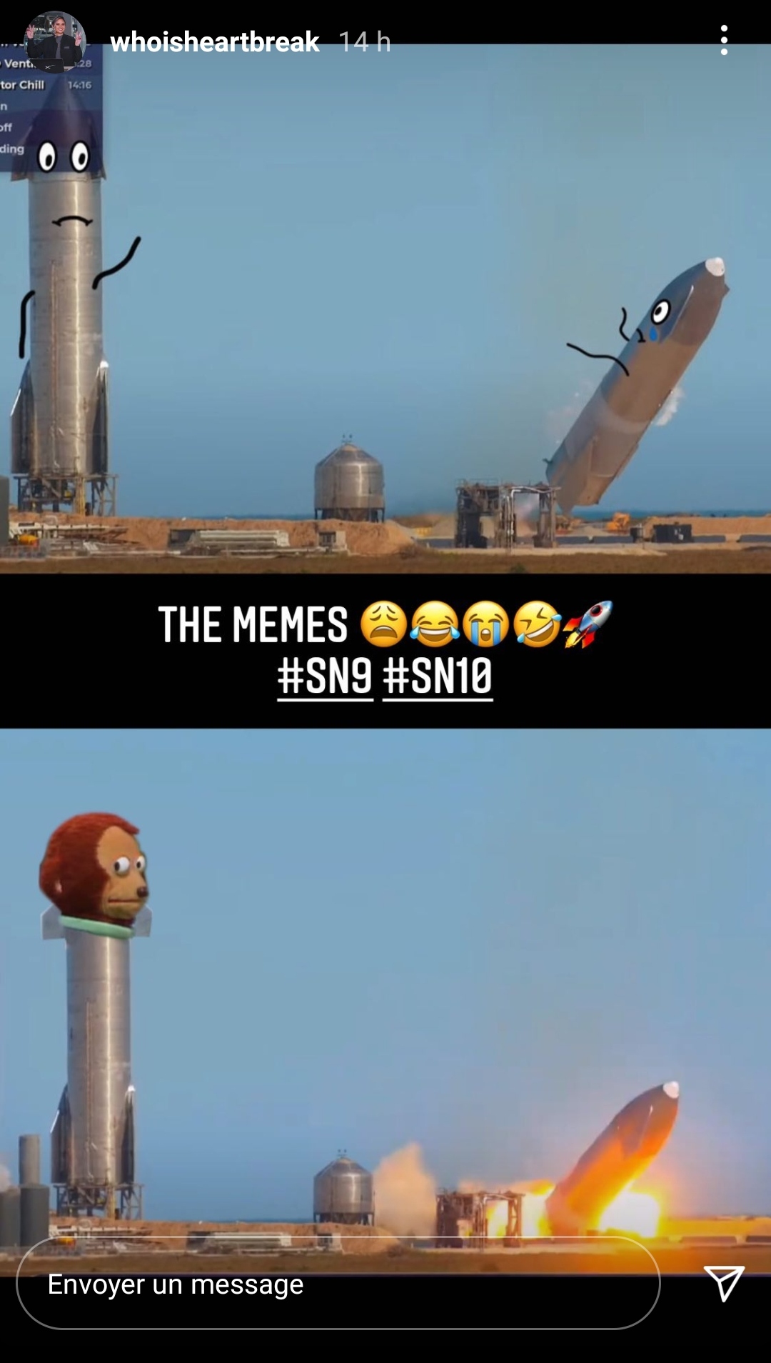 Mais SN10 va très bien SpaceX c'est les seuls au monde Ă maĂ®triser l'avionique comme ils le font, personne ne fait ce qu'ils font. Perso je ne vois pas ça comme un Ă©chec mais une tentative ratĂ©e. Comme dirai RĂŞves d'Espace :Â