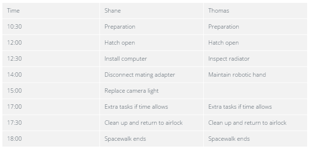 Thomas a commencé sa deuxième sortie de l'ISS. C'est une mission qui dure 6h30 et a commencé à 12:24 (heure française). Vous pouvez le suivre en direct sur NasaTV : https://www.nasa.gov/nasalive Il s’agit de la dernière d’une série de sorties orbitales visant à mettre en place un deuxième port d’amarrage, qui servira aux futurs vaisseaux commerciaux habités, actuellement mis au point notamment par SpaceX et Boeing.Ces navettes doivent commencer à acheminer des astronautes vers l’ISS à partir de 2018. ![]() ![]()