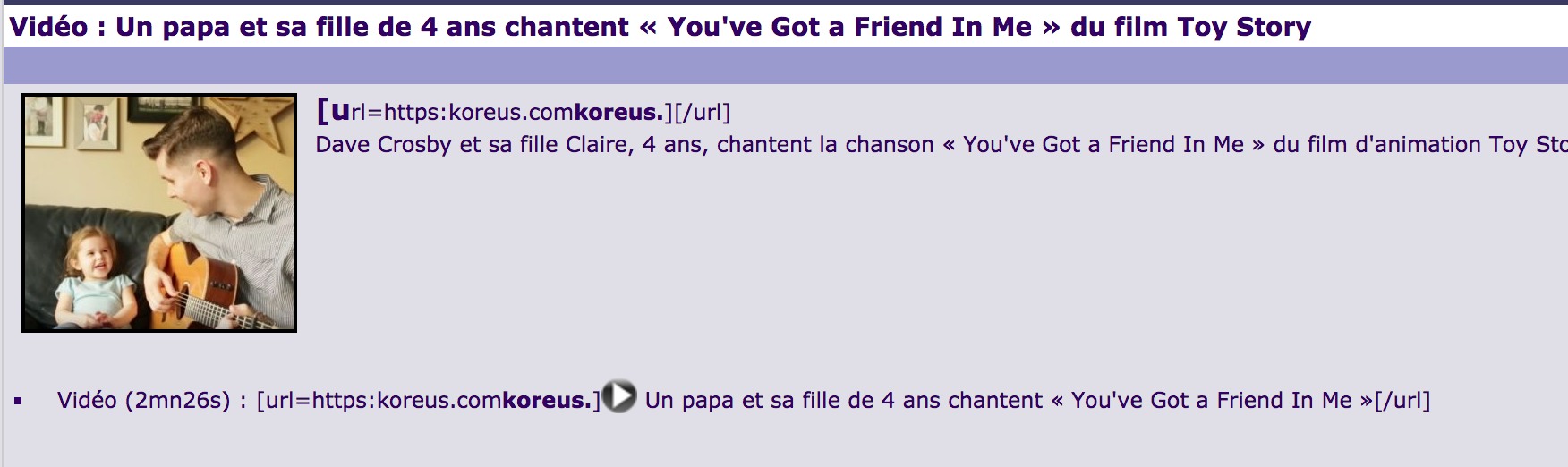 Le site est cassé ? au lieu d'avoir les vidéo/photo intégrées j'ai des balises :