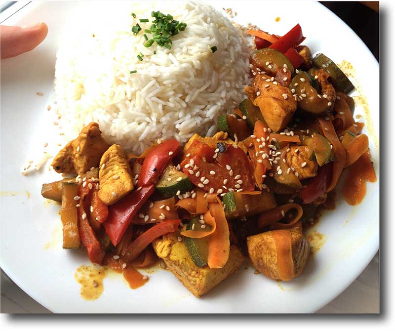 Non. Ce midi, extra poulet aux légumes cools avec déglaçage sympa, épices funs et graines de sésame stylées. Et riz basmati. Miam miam extra prise de masse extra congestion extra back cobra. Edit : purkua la foto i tou tordu ? :evil: :evil:Avec clic droit + ouvrir dans un nouvel onglet elle est droite et on peut faire un big zoom foodporn je crois.