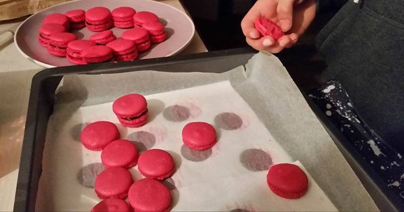 Aucun rapport direct mais une copine nous a fait une tarte aux pommes renversée avec des noix:-o la vache, c'était trop bon :coeur: Bon, avant j'avais préparé des entrées, puis un poulet à l'espagnole (trop bon), fromage et X sortes de gâteaux dont les fameux macarons maison. Là, ils étaient colorés rouge et fourrés à la pistache. En gros, avec les brunies et les litres de café ultra serré, sans parler de la poire... Vais mourir. ![]()