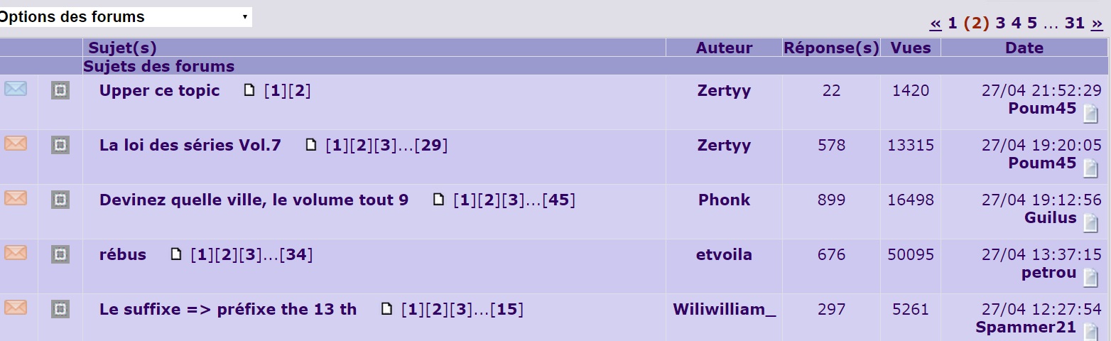 Actualisation des scores : Poum45 : 06 points -PAPI- : 03 points DonMascarpone : 03 points Spammer21 : 02 points D-Soul : 01 point Djoach : 01 point Anda_- : 01 point Louxor : 01 point OzzyO : 01 point petrou : 01 point Bon, cette fois je peux partir en vacances... je suis pénard pendant un moment ![]()