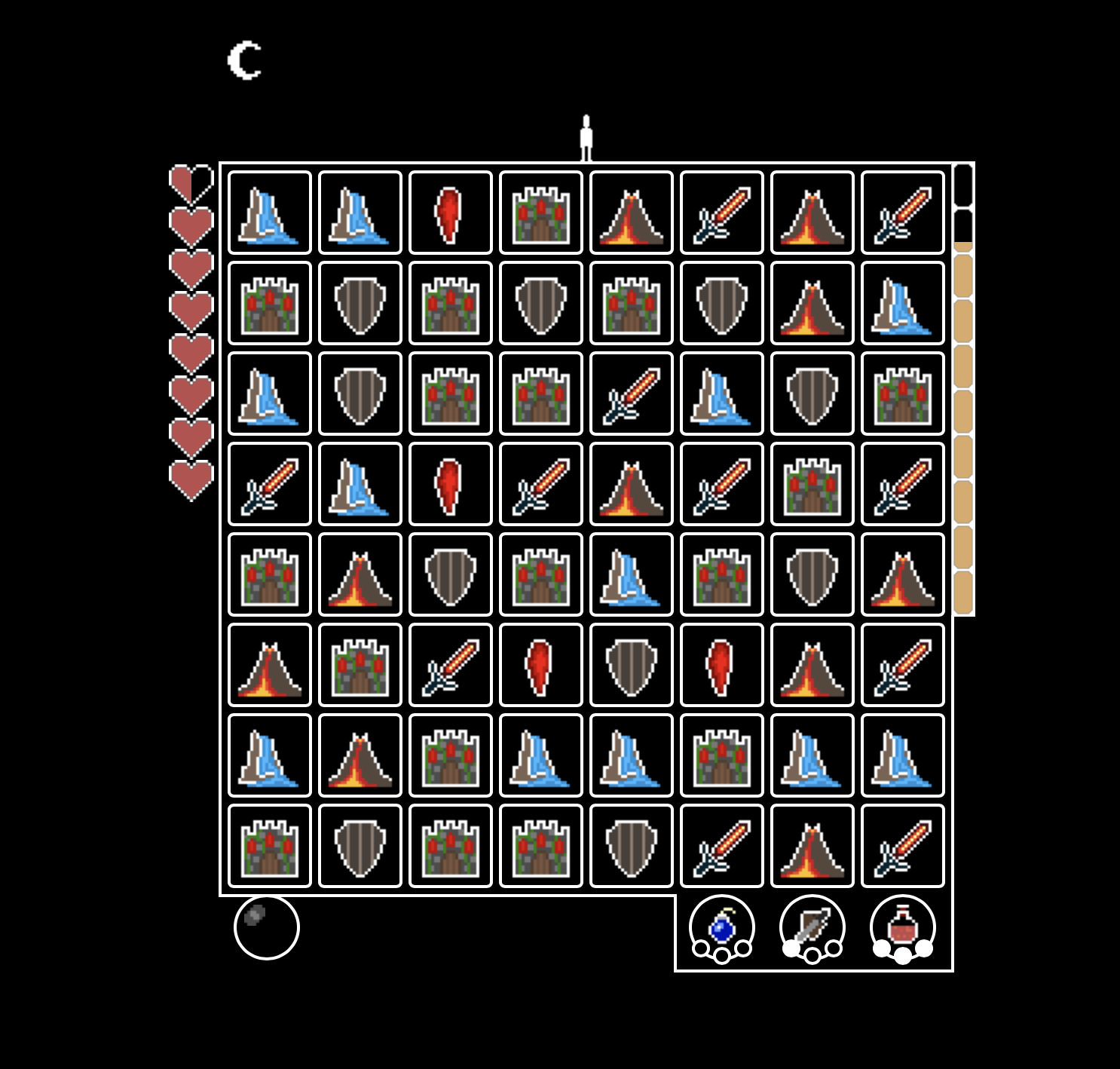 Au la 2éme nuit, la grille était rempli de tombe, mausolée et autres cranes qui font apparaitre des monstres. Les épées et boucliers était placé de part et d'autre de la grille, donc aucune chance de gagner...