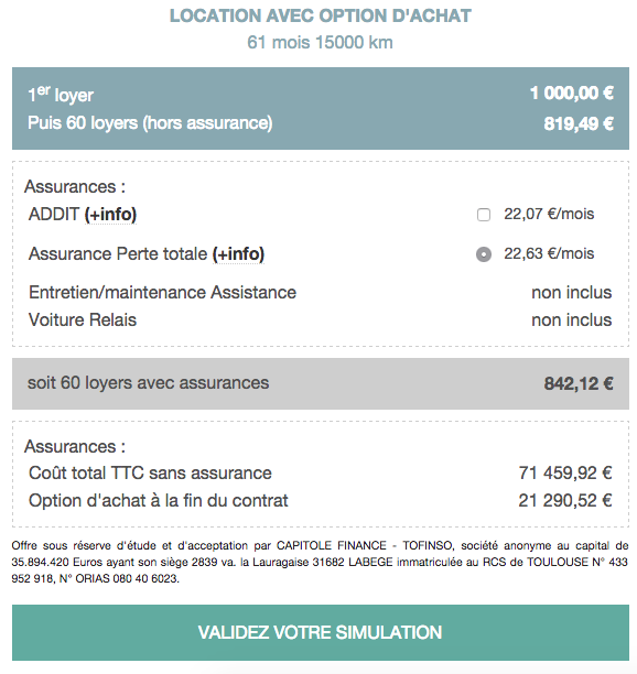Si tu compares les situations d'un pays à un autre forcément on va pas pouvoir s'entendre. Expliques donc le principe puisqu'on manque de clarté, et inscris le clairement dans le contexte économique que tu connais, vu qu'on a pas l'air d'être dans les mêmes contrées. Ha oui, un contre-argumentaire à toute épreuve sur ta dernière phrase, à mon tour d'utiliser le "lol". EDIT: petite simulation sur une voiture à prix équivalent en leasing sur étalement maximal. Comme quoi mon manque de connaissance n'est pas si flagrante que cela apparemment, à 150€ près. ![]()