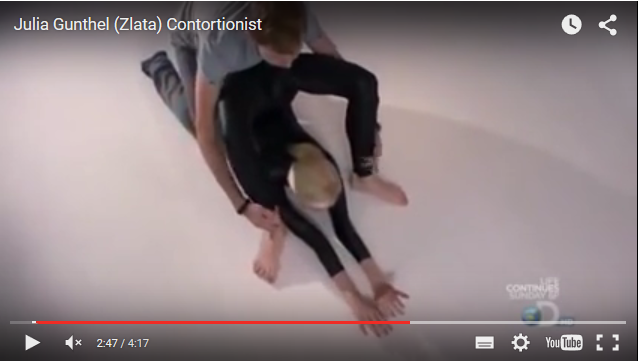 Marche pas des masses ...:-) Julia Guenthel alias "Zlata", une jeune et jolie contorsionniste russe, possède un corps avec lequel la jeune femme parvient à faire prendre toutes les positions EDIT: la miniature n'était pas prévu ... :coeur: