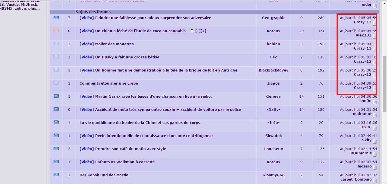 J'aime bien voir régulièrement à une heure tardive les posts de Crazy-13 en file indienne dans la CDL