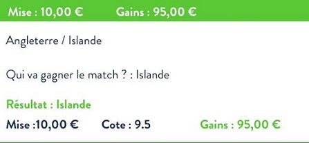 @TrUite_MoUstach J'ai un pote qui a parié 2 - 1 pour l'Islande, malheureusement, pas d'argent mais sur une compétition en ligne, il est passé de la 16,000e place à la 4000e en un seul pronostique