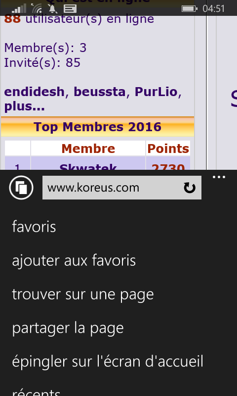 Mais c'est que je vais me faire rattraper ! ![]() Poum45 : 105 points ☆ ☆ -does- : 67 points PurLio : 55 points Insert : 46 points petrou : 19 points Djoach : 12 points Siddh : 7 points Skwatek : 7 points Kahlan: 5 points Spammer: 5 points Galora : 5 points Carraidas : 5 points Carpet_bombing : 4 points