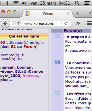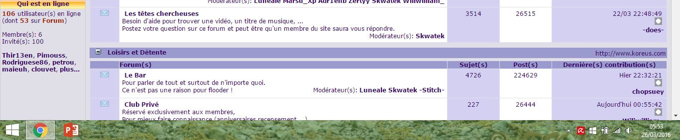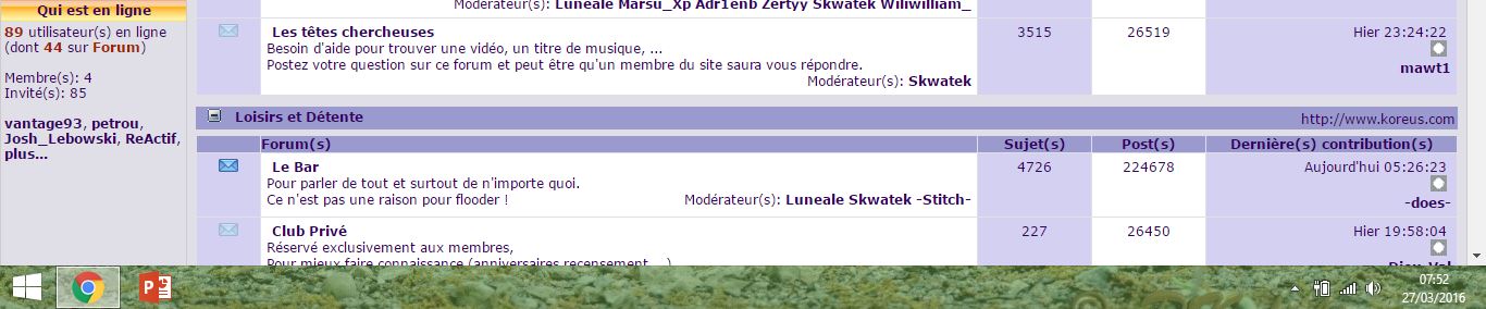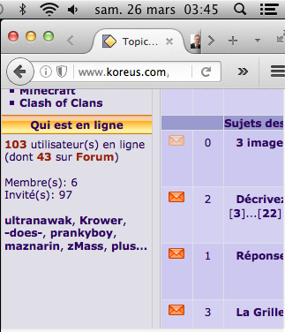 Ah oui, en effet ^^ Mais bon, on est d'accord que c'est juste la souris sur le pseudo qui fait ça, hein ? Allez, ppf, point gentil Poum45 : 108 points ☆ ☆ -does- : 79 points PurLio : 68 points Insert : 49 points Djoach : 23 points petrou : 19 points Siddh : 7 points Skwatek : 7 points Kahlan: 5 points Spammer: 5 points Galora : 5 points Carraidas : 5 points Carpet_bombing : 4 points maieuh : 2 points