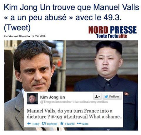 ![]() https://twitter.com/manuelvalls/status/730391854085222400 Mais la démocratie ne passe que par les voix pour nos politiciens. Et les voix ce n'est que de l'arithmétique, ce n'est pas ça qui intéresse Manuel.
