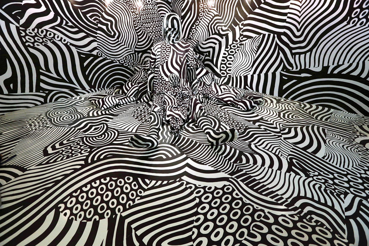 Des toilettes en or en parfait état de marche, réalisées par l'artiste italien Maurizio Cattelan, sont mises à disposition du public au musée Guggenheim à New-York vendredi 16 septembre. Œuvre intitulée "Amérique". Parodie du chien de Jeff Koons par l'’artiste anglais Whatshisname.