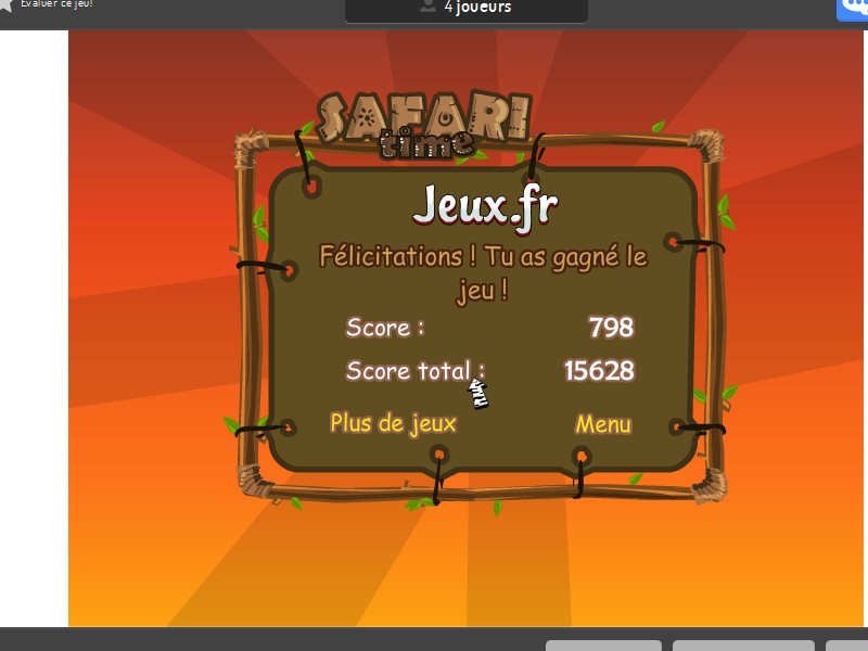 >>> Jouer à Safari Time <<< Synopsis: Un zèbre veut traverser la savane, mais de nombreuses difficultés se dressent sur sa route. Aidez le à éviter, entre autres, les trous, les mines et les pluies acides. Comment Jouer: • souris Genre: #point and click Bon jeu! Je viens de le terminer, vous avez 24 étapes avant d'arriver à la fin, c'est réalisable vu que je l'ai fini ![]()
