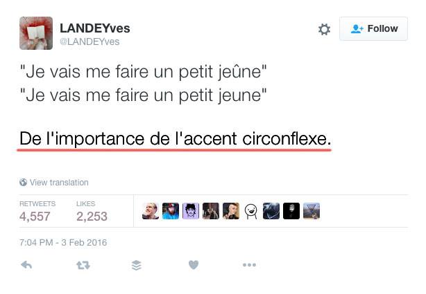 exemples vus sur le web pour les fameux accents circonflexes...non, ils ne sont pas là pour faire joli ou pour faire snob...ils contribuent au sens des mots...