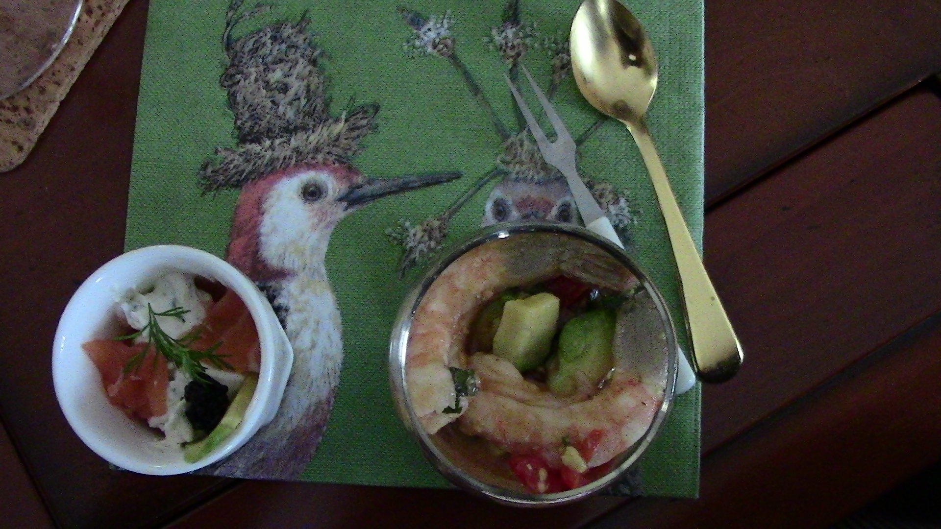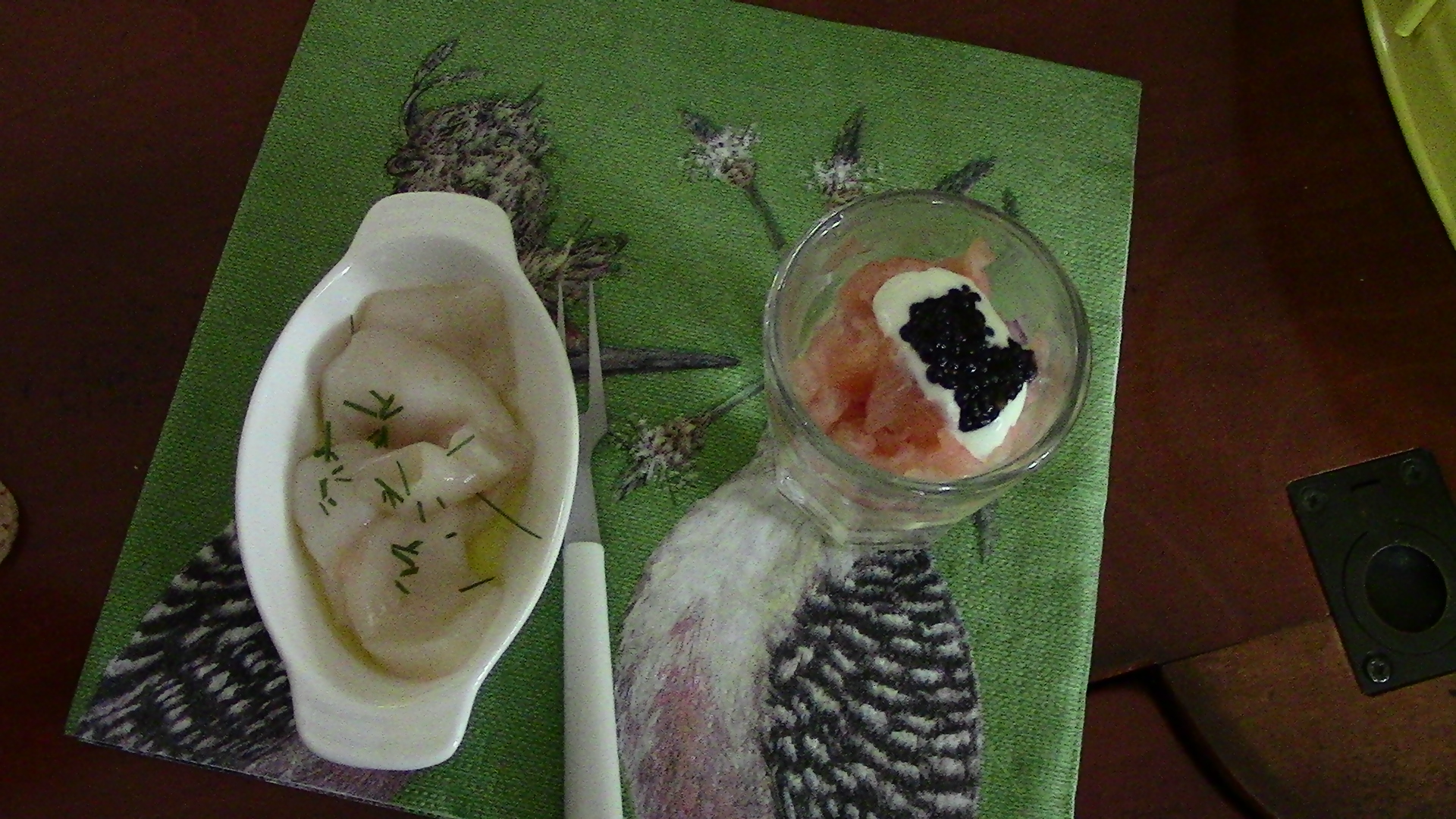 Ma fille a préparé les entrées, des verrines de toutes sortes à prendre avec un champagne ![]() Pour le plat principale du homard sauce au beurre blanc citronné. Avant la mise au four Accompagné de trois purées, patates, topinambours et potirmarons. ![]() ![]() ![]() ![]() ![]() Le homard mais j'ai oublié de le présenter avant l'attaque qui a été sans pitié. ![]() ![]() ![]()