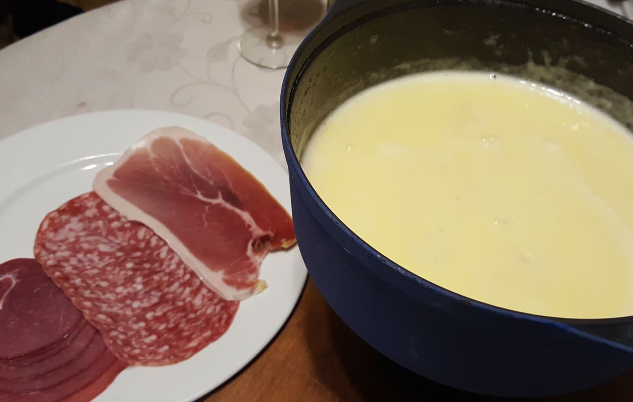 Il neige alors pour fêter ça ce soir c'était fondue savoyarde.