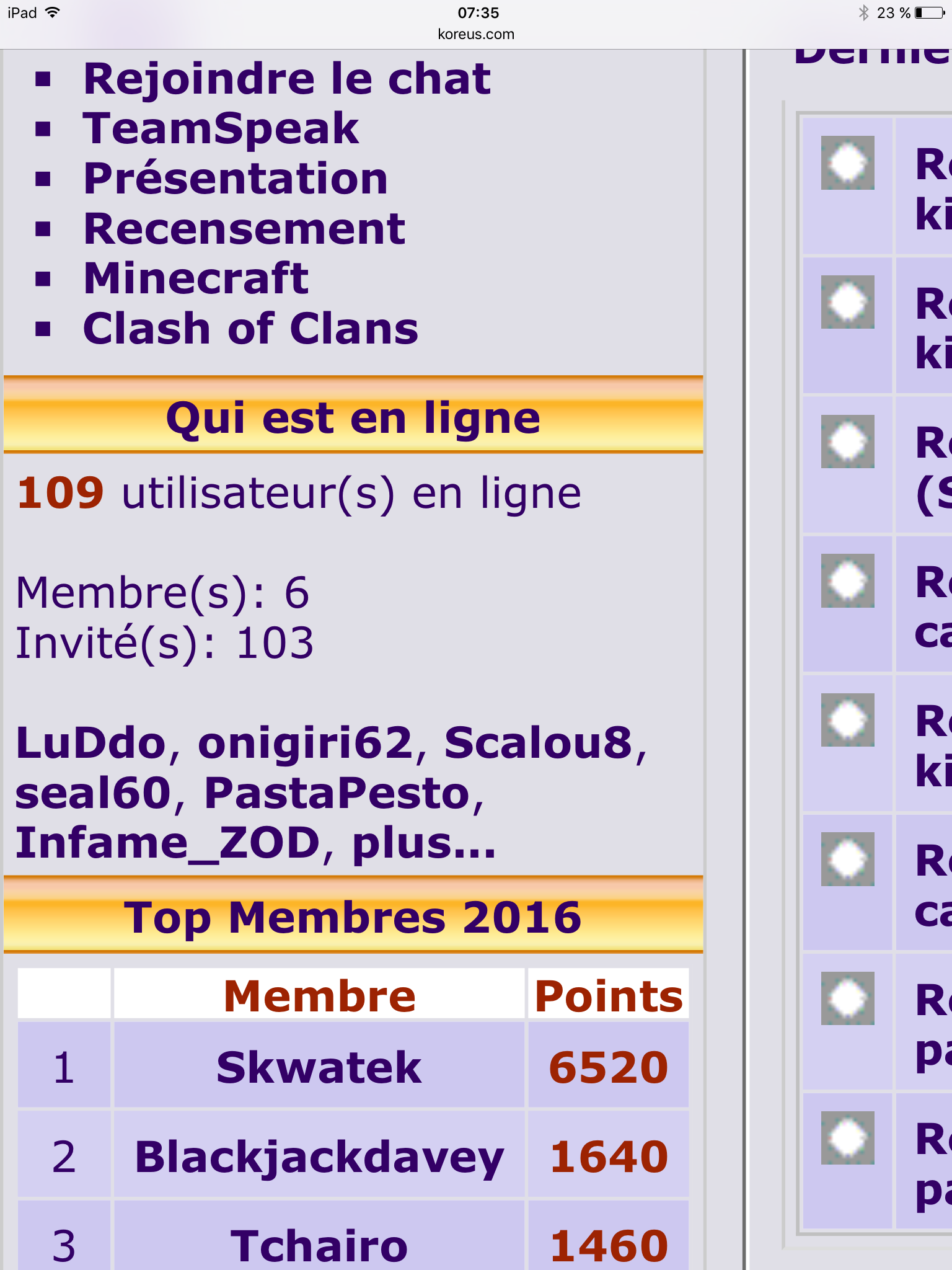 PurLio : 26 points Noemus : 10 points Carraidas ☆ : 9 points Titlexe : 8 points Nwc-vincent2 : 7 points Tchairo : 5 points Infame_ZOD : 5 points Poum45 ☆☆☆☆ : 2 points ![]()