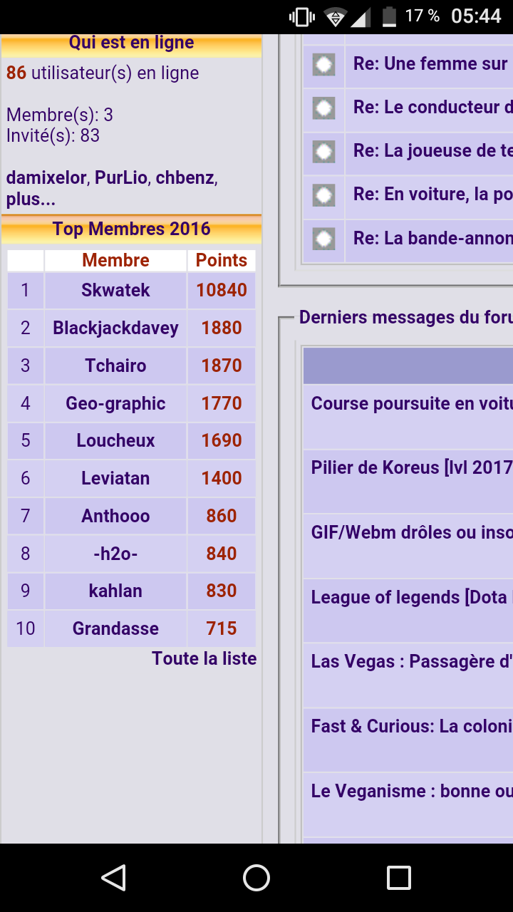 petrou : 49 points Insert : 48 points Poum45 : 40 points PurLio : 28 points Infame_ZOD : 12 points Anthooo : 11 points Carraidas : 6 points Yazguen : 2 points ![]() Avec le screen :roll: