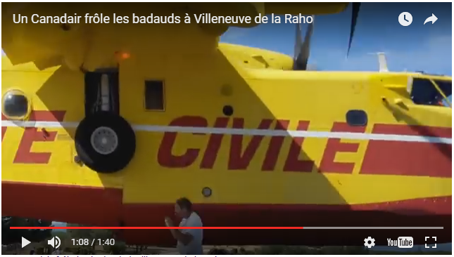 | La loi c'est moi    Inscrit: 19/04/2008 16:29 Post(s): 8776 Karma: 2423 | Un Canadair frôle les badauds à Villeneuve de la Raho On voit dans cette vidéo deux canadairs faire le plein au niveau de Villeneuve de la Raho, le second, à 1:07 va frôler très fortement le sol et manquer d'heurter les badauds qui était sur la digue.