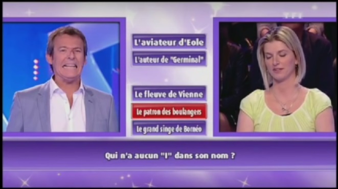 J'ai déjà regardé cette émission quelques fois et le niveau des questions posées au "champion" est clairement inférieur à celui des questions posées aux autres candidats. Le coup de la question ici: ![]() Du coup ils comptent le "i" dans "Saint" comme étant dans son nom, mais pour celui dans "Émile Zola" ils auraient dit quoi ? Que c'est dans son prénom et pas dans son nom ? En plus sur wikipédia il est connu comme Honoré d'Amiens, il n'a pas réellement de nom, juste un prénom et une ville où il officiait. Bref, à la place de la candidate j'aurais demandé à un huissier de faire un peu le ménage.