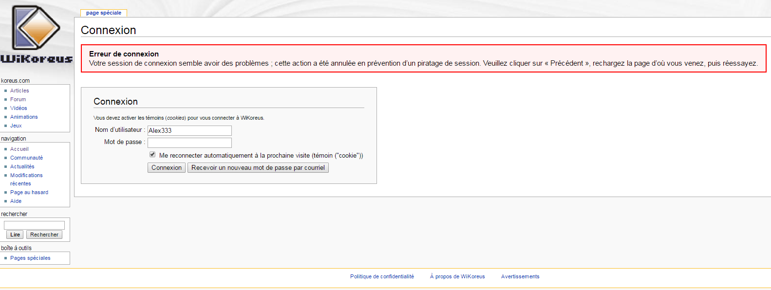 | Alex333 | [Résolu] Connexion impossible au Wiki Koreus |