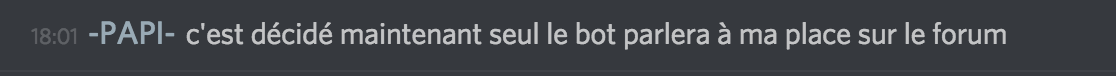 En plus ça concerne juste les 5 ou 6 copains qui sont sur discord et qui se contentent de venir sur le forum pour se faire des private jokes non ? Du coup on s'en fout un peu ?