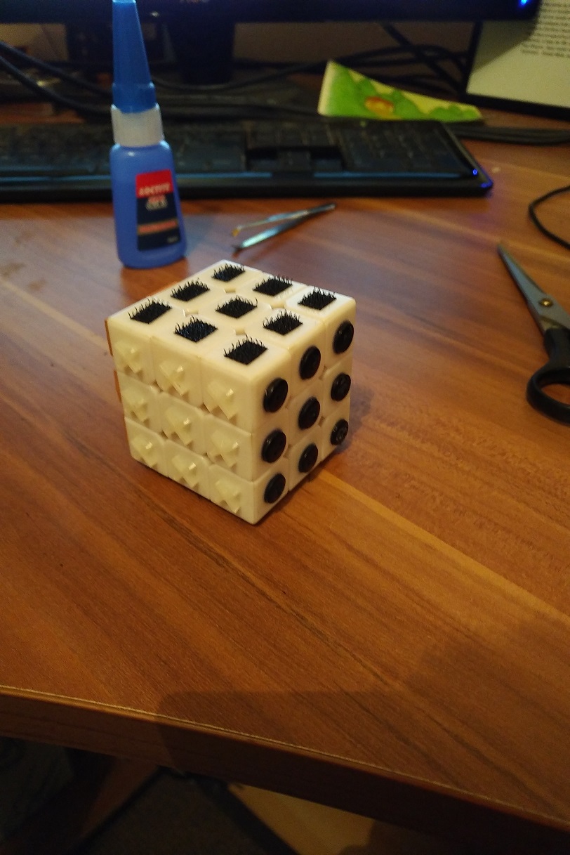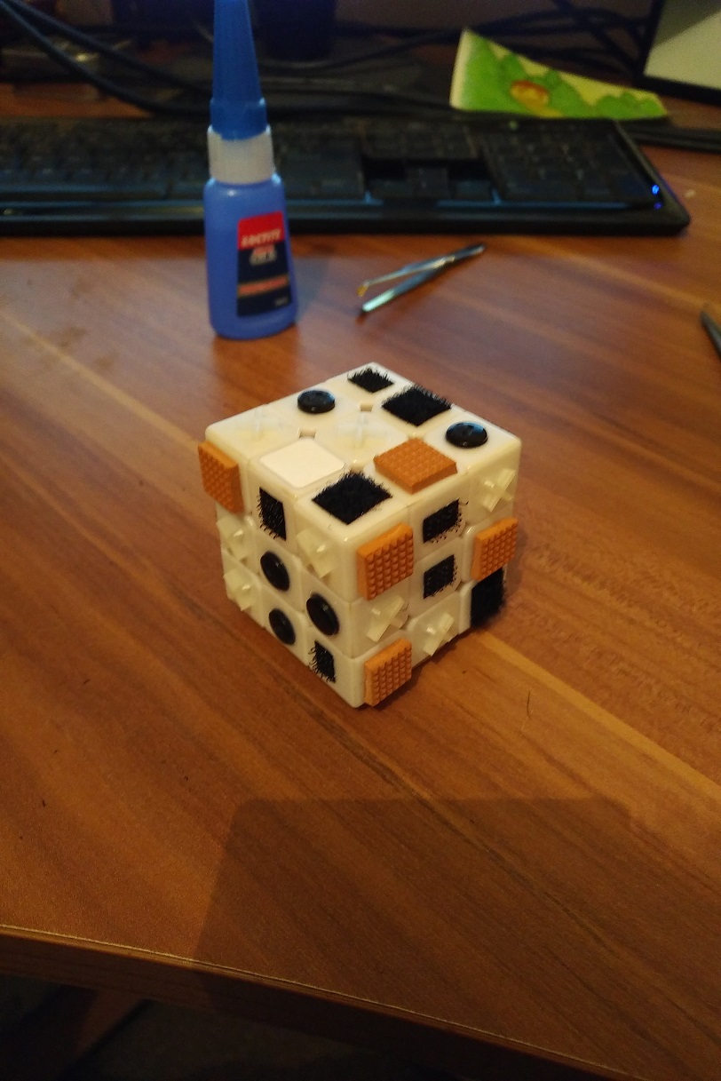 ![]() Hier entre midi et 2h j'suis allé à Casto. Et hier soir j'ai customisé un de mes cubes. Y'a du velcro (les deux faces), des petits boutons de chemise, les machins pour caler les portes, les bidules pour mettre sous les pieds de meubles, des petits croisillons pour carrelage et une face normale. C'est bien différentiable au touché ![]() Je l'ai résolu dans le noir avant de m'endormir. Au final, on passe plus de temps à tâtonner qu'à le résoudre mais c'est marrant. ![]() ![]()