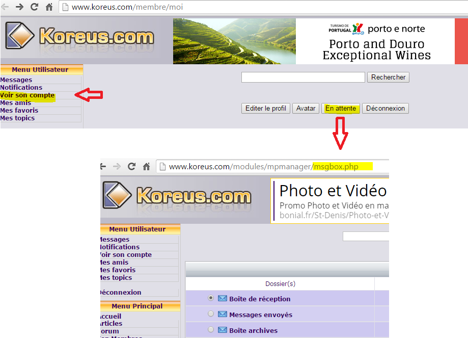Sur la page "Voir son compte", ya un bouton bizarre "En attente" qui me renvoie vers le gestionnaire de messages :
