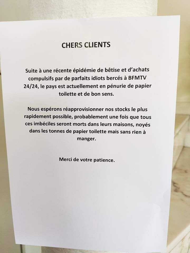 | Je masterise !    Inscrit: 23/10/2016 22:08 Post(s): 2372 Karma: 1569 | @PurLio D'ailleurs qui nous dit que c'est du PQ ? ppf: "Le mystérieux virus chinois se propage via les interactions humaines"