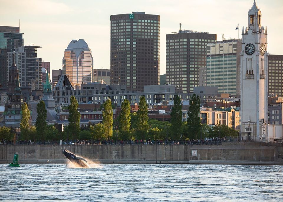 Baleine qui reste depuis plusieurs jours devant le centre-ville de Montréal. Une première je crois.