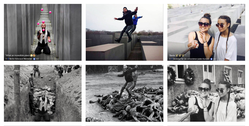 /!\ photos actuelles superposées aux photos d'archives des camps d'exterminations, dans le but de sensibiliser certains visiteurs peu respectueux. ![]()