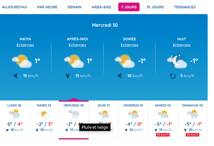 ![]() ![]() Edit: Bon après une étude plus attentive du phénomène, j'ai écrit un rapport de bug a meteofrance xD, il semble que la météo affichée pour la journée corresponde toujours au détail du jour suivant ![]()