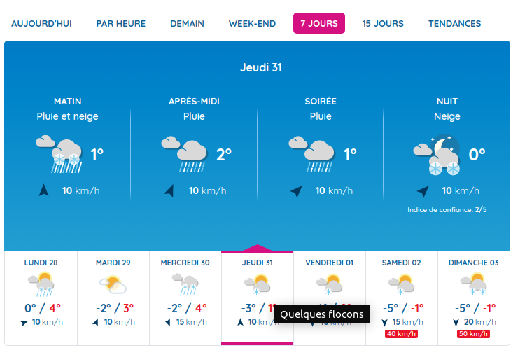 Je crois que le site de Météo France a un petit problème (ou sinon, c'est juste qu'ils affichent enfin clairement qu'ils ont aucune idée du temps qu'il fera dans les jours qui viennent xD)