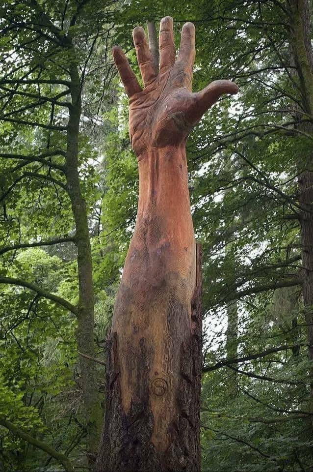 mais l'artiste de la tronçonneuse Simon O ' Rourke a trouvé une meilleure solution pour symboliser la dernière tentative de l'arbre pour atteindre le ciel. ![]()