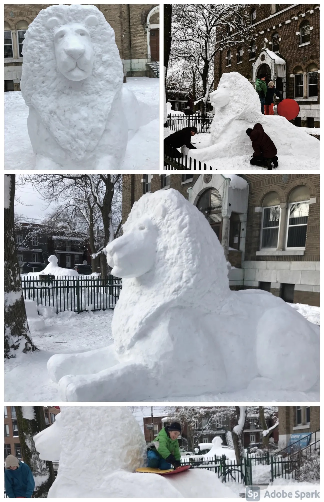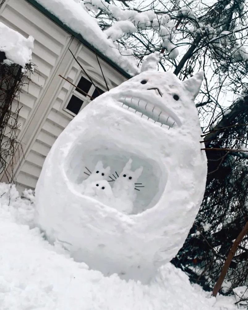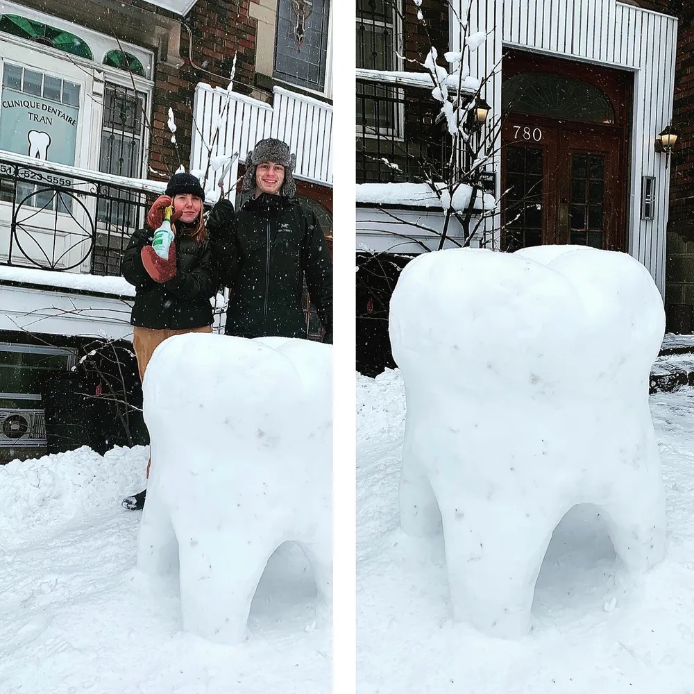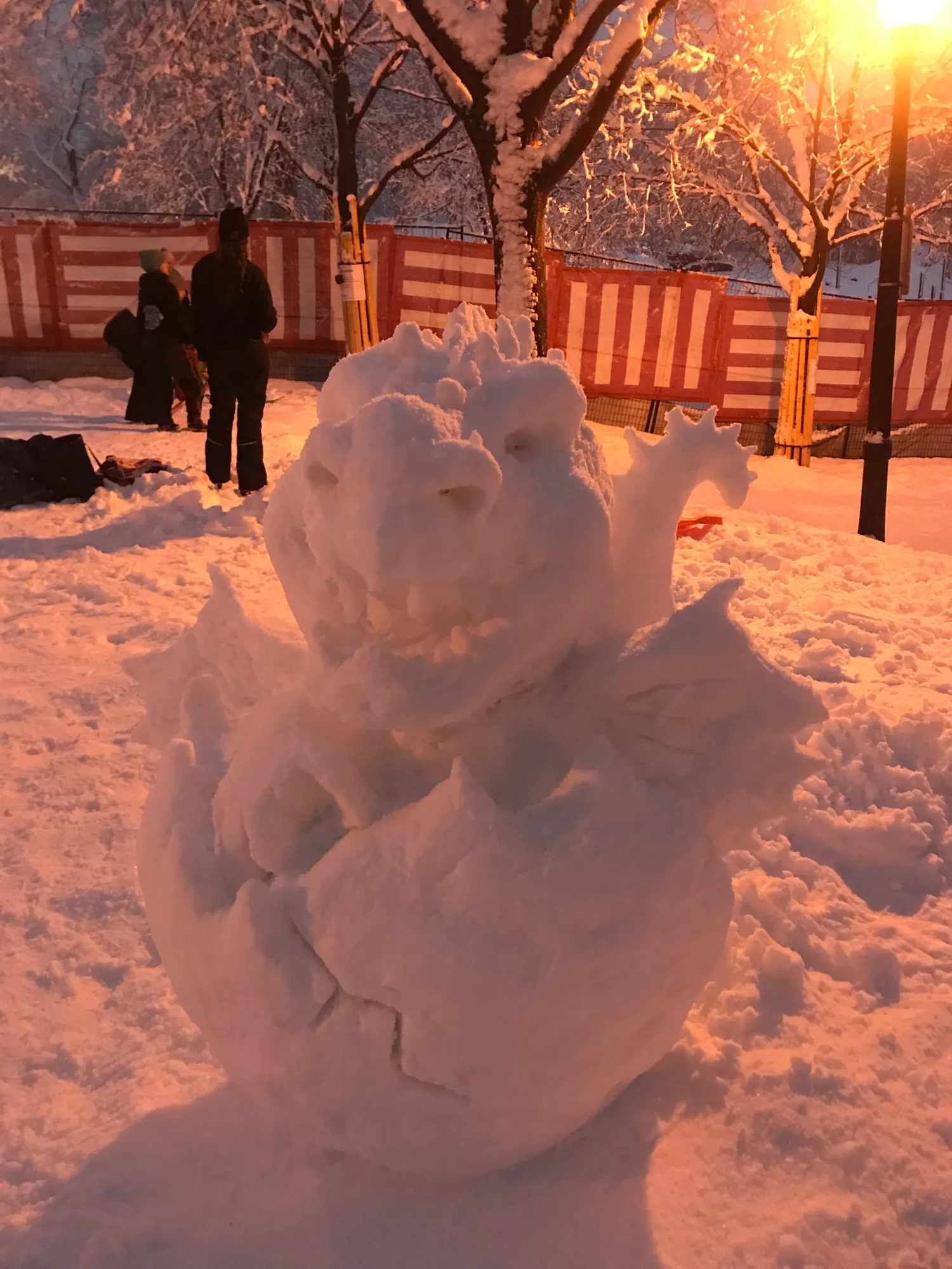 Mais il est génial ce concours ! Bravo pour votre tricératops, il est très beau. Quelques autres sculptures de neige que j'ai trouvées particulièrement réussies, et originales pour certaines (la dent, fun^^) : ![]() ![]() ![]() ![]() ![]() Un lion toboggan. ![]()