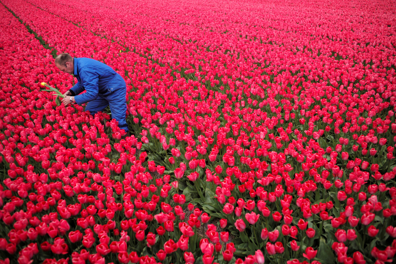![]() Le fermier Piet Warmerdam prend une tulipe jaune dans un champ de tulipes rouge, car sa croissance pourrait endommager le reste, à Den Helderin, aux Pays-Bas. ![]() Un manifestant en flamme, après que le réservoir d'une moto de police a explosé lors d'affrontements pendant une manifestation contre le président vénézuélien Nicolas Maduro, à Caracas. ![]()