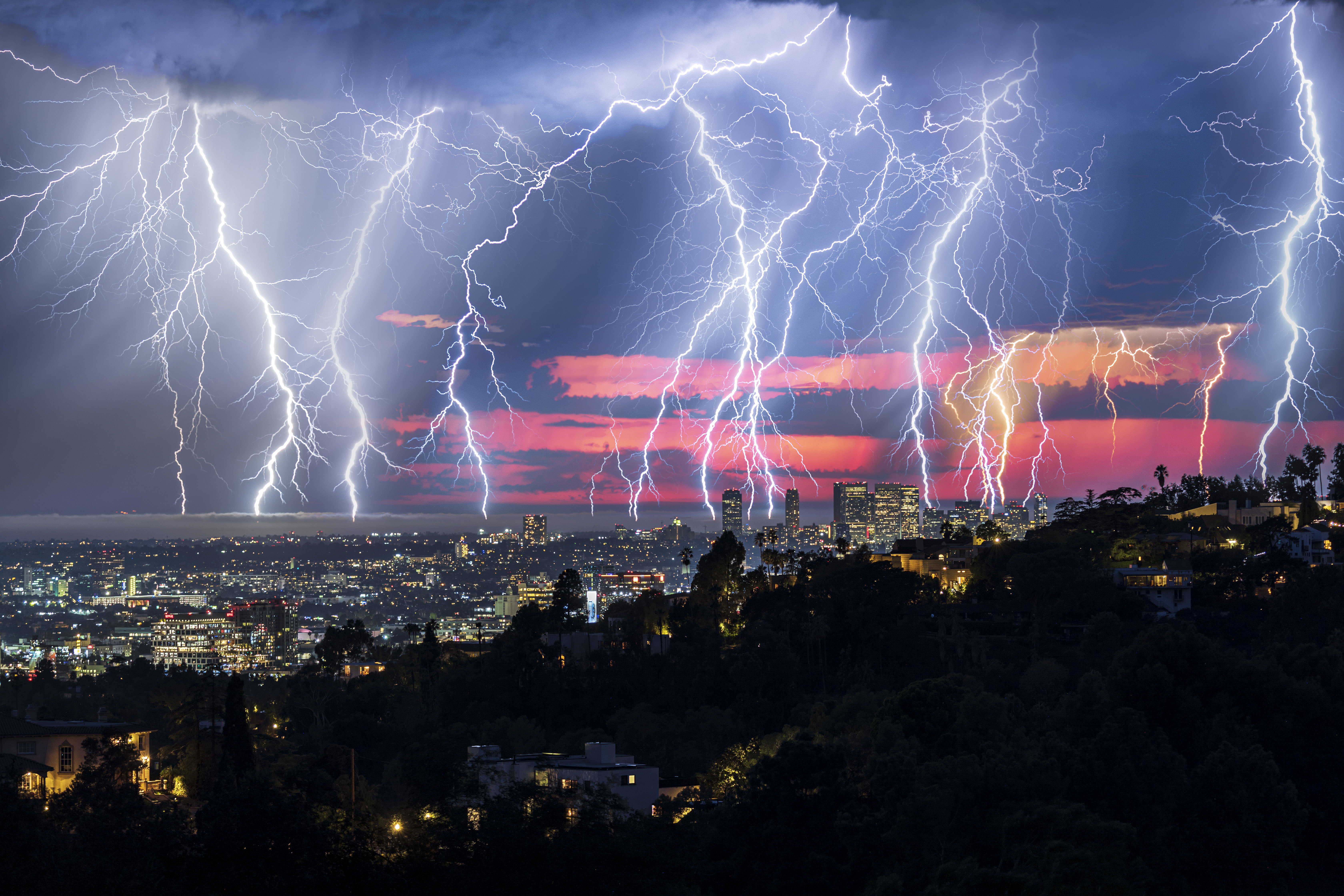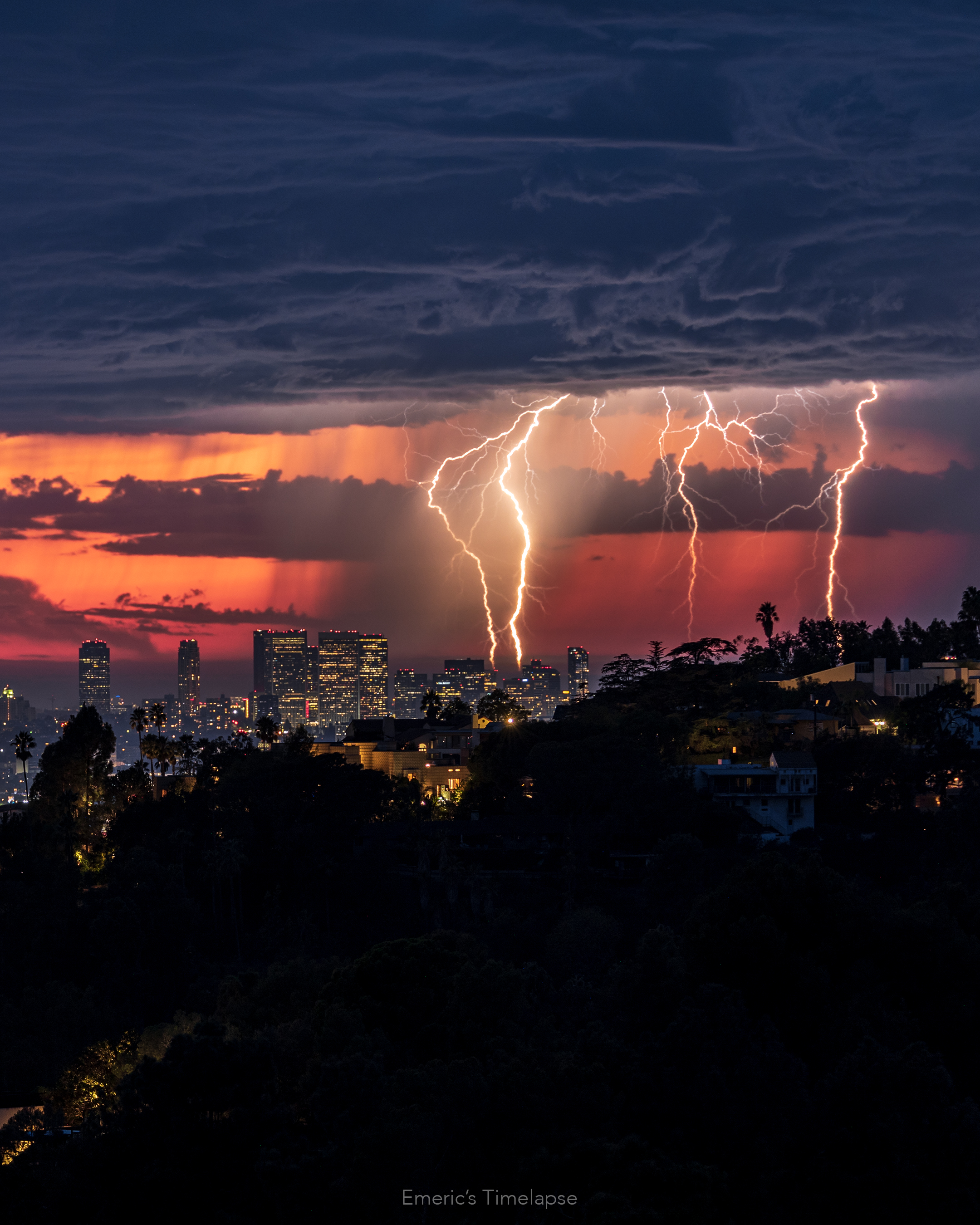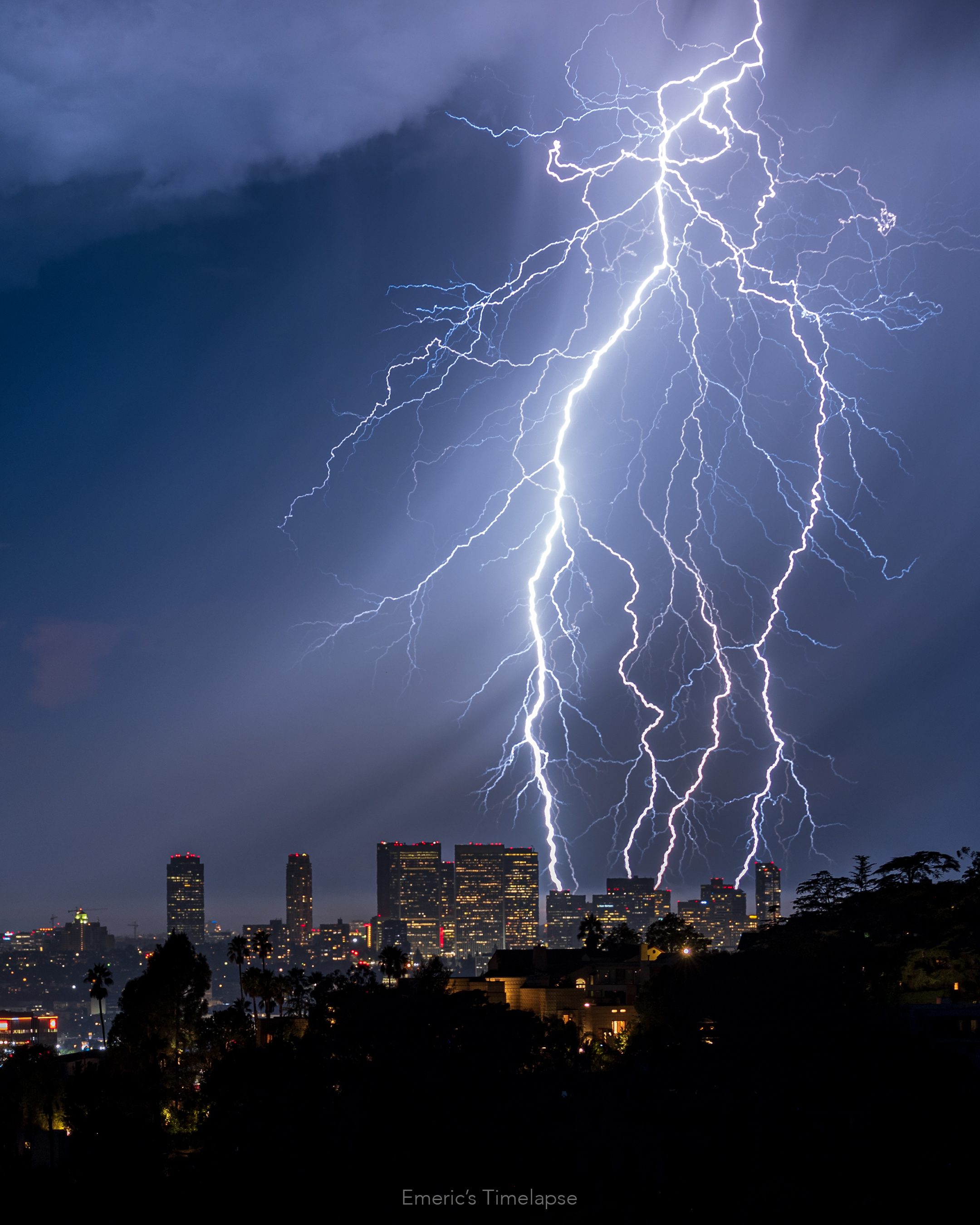 Quelques photos que j'ai prise d'un orage très rare à Los Angeles la nuit dernière. Après 9 ans dans la ville, c'est la première fois que je vois ça ! Toutes les photos sont vraies à part la première qui est un "stacking", 8 photos en une seule. Toutes les autres sont vraies direct depuis l'appareil photo ! Elles ont été prises depuis Griffith Park (là où se trouve l'Observatoire), et les bâtiments que vous pouvez voir sont Century City à Los Angeles.