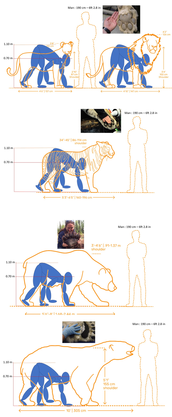 Je ne sais pas si je l'ai déjà passée celle là. Durant une discussion des chances d'un homme contre des prédateurs j'ai fini par faire ça pour donner une réelle idée des différentes masses.