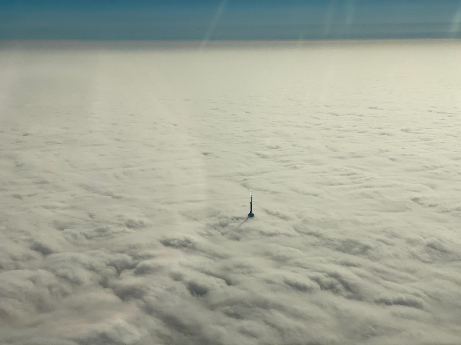![]() Toujours Toronto, mais sous un épais brouillard. (La pointe que l'on voit dépasser appartient à la tour CN) ![]()