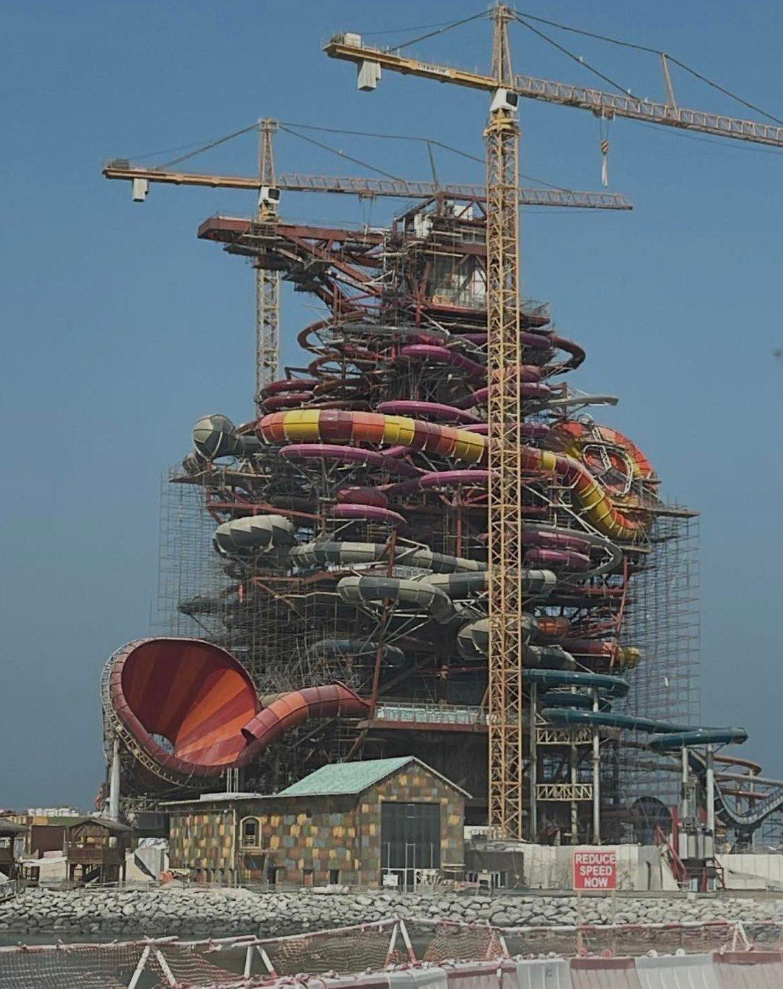 Construction de l'Aquatar, un parc aquatique au Quatar.