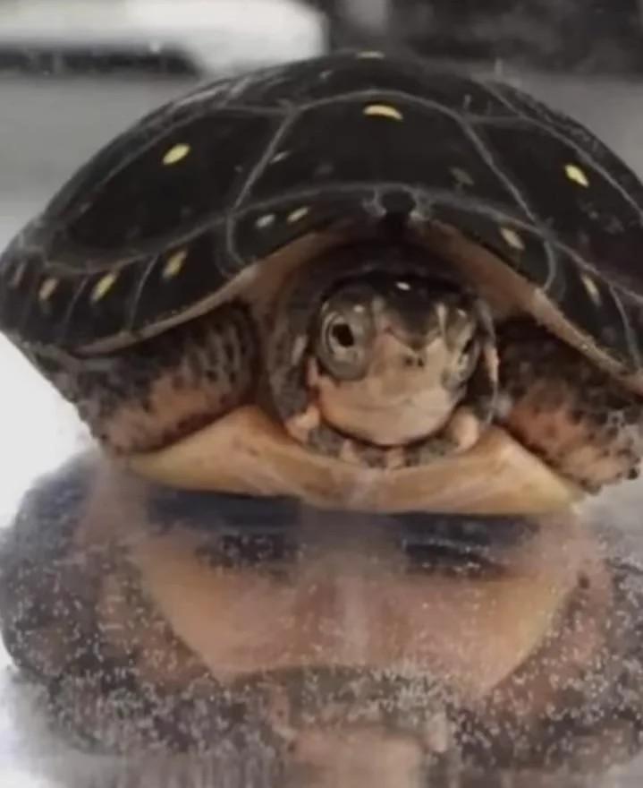 Le reflet sous une tortue donne l'impression d'un dessin de bonhomme moustachu qui porte un turban :