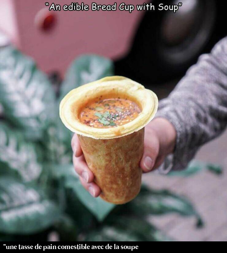 En 2005 à Monterey California, ils servaient la soupe sur les quais, Bowl Chowder (une soupe épaisse avec des fruits de mer) dans un pain de 400gr dont ils coupaient le dessus, évidaient la mie et remplissaient avec la soupe. Un délice pour 3 dollars ![]() ![]() ![]()