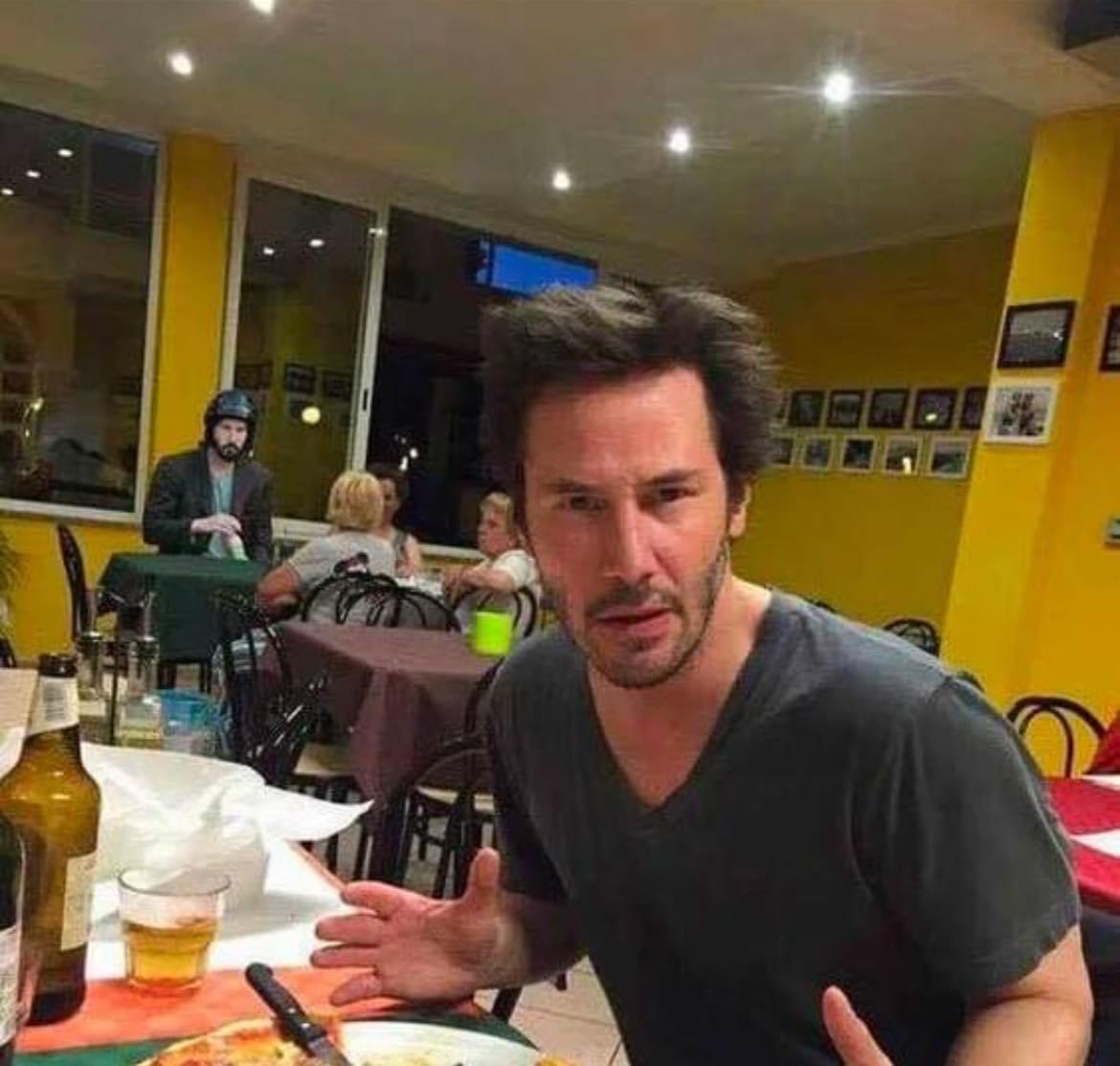 | Je masterise !    Inscrit: 30/09/2019 09:31 Post(s): 2343 Karma: 8539 | Quand le type au fond du resto ressemble plus à Keanu Reeves que Keanu Reeves lui même…